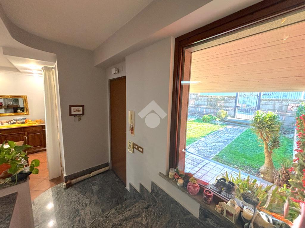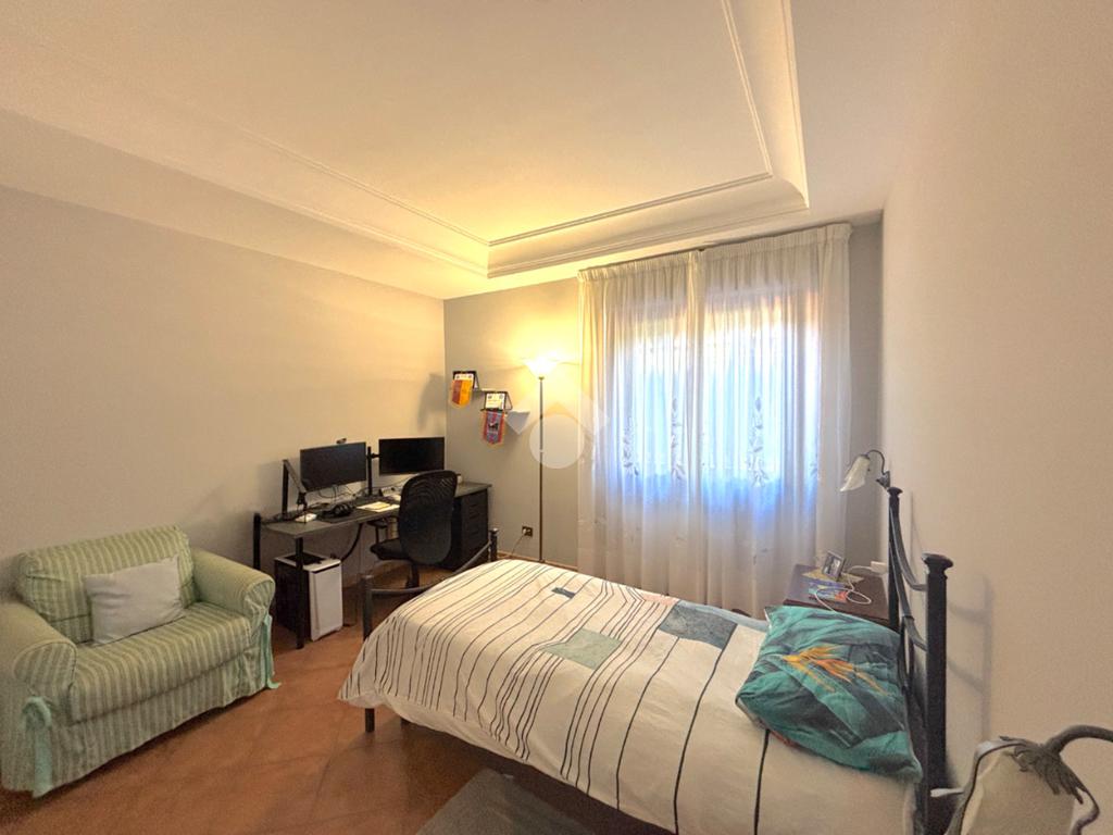Al piano terra, un luminoso salone con termo camino e uscita sul portico, cucina a vista, anch'essa con uscita sul portico, corridoio, disimpegno, cameretta con bagno interno, finestrato e con doccia multi funzione, ampia camera matrimoniale, secondo bagno finestrato e con vasca idromassaggio.