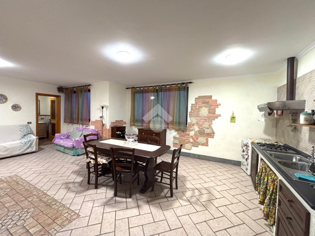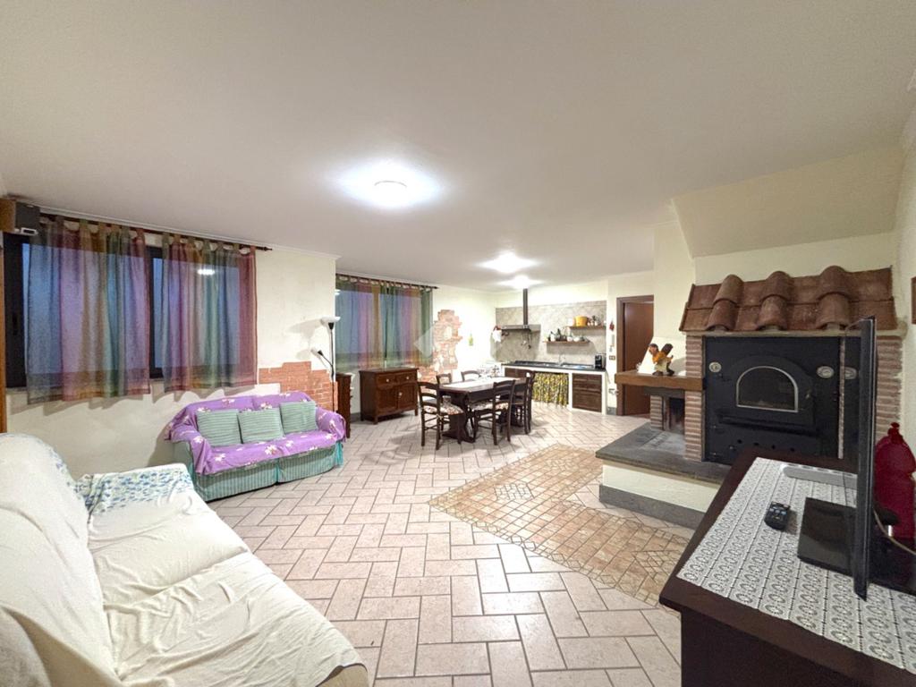 Il piano seminterrato ospita un grande salone con angolo cottura, forno a legna, camino e bagno con doccia; inoltre si ha accesso al garage di circa 40 mq, il quale ha accesso anche dall'esterno tramite rampa.